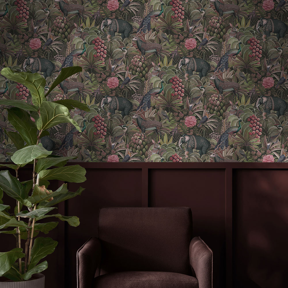 Tapéta, rózsaszín, dzsungel, állatok, 142314, Jaipur, Graham Brown Premium