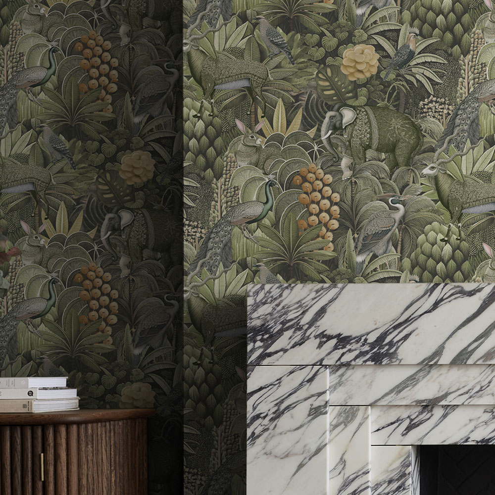Tapéta, zöld, dzsungel, állatok, 142316, Jaipur, Graham Brown Premium