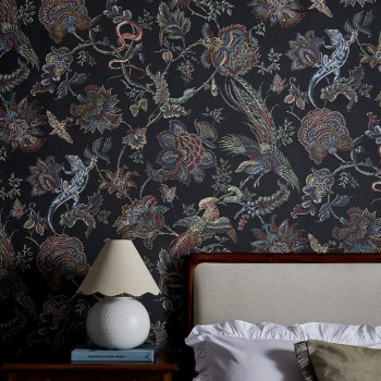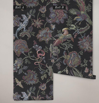 Tapéta, fekete, virágok, állatok, 143235, Jaipur, Graham Brown Premium