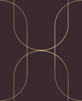 Vlies tapéta, matt, finom szálszerű textúrájú, lila/szilva színű, félig fényes arany vonalakkal.