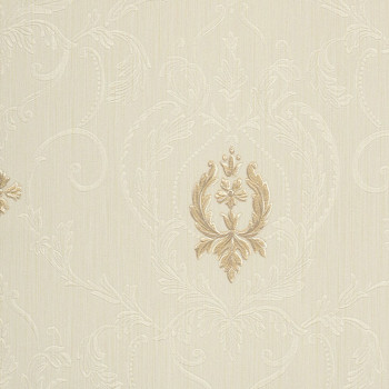 Vinil, krém tapéta, fém szürke-bézs barokk díszek.