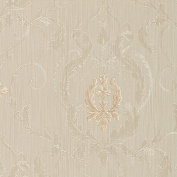 Vinil, szürke-bézs színű félfényes tapéta, bézs színű barokk díszek.