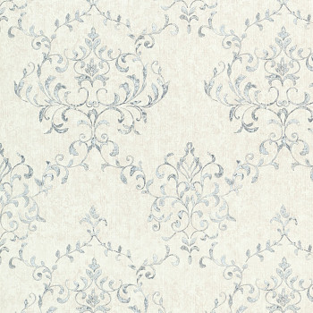 Luxus vinil tapéta, ezüst ornamentumok, matt szürke-fehér háttérrel, a megjelenés és textúra finom szövet.