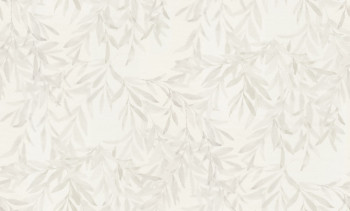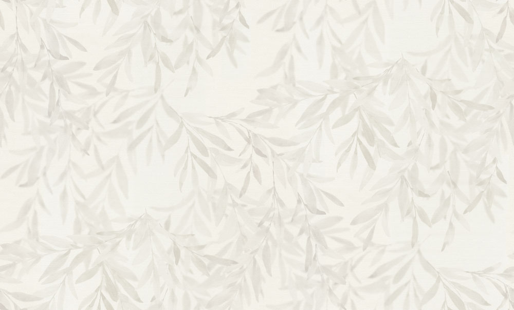 Vinil felületű vlies tapéta, krémfehér alap, szürke árnyalatú ágacskák és levelek, szövet textúra.