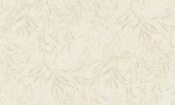 Vinil felületű vlies tapéta, világos bézs alapszín, bézs árnyalatú ágacskák és levelek – helyenként finom aranyfényű, szövethatású textúrával.