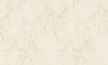 Vinilbevonatú vlies tapéta, virágzó nyírfa, világos bézs, krém.