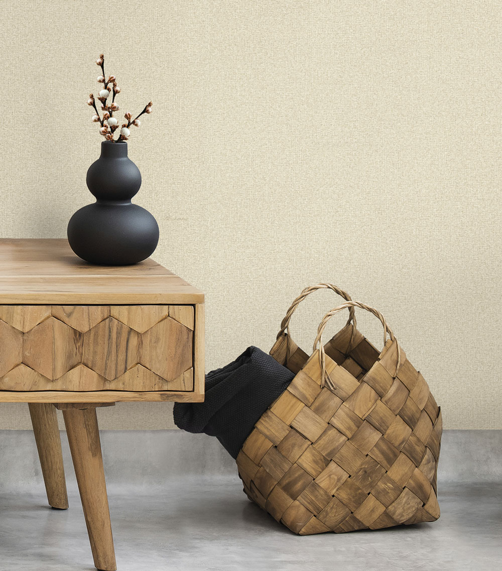 Vinil felületű vlies tapéta, szövethatású, bézs és szürke árnyalatokban.