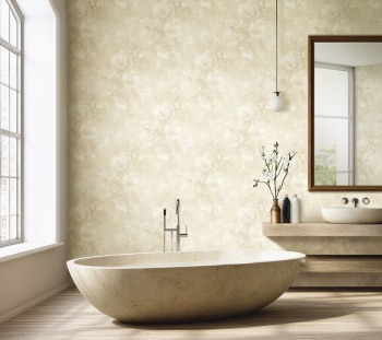 Vinil felületű vlies tapéta, festményhatású virágmintával, bézs és krém árnyalatokban.