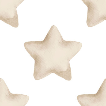 Vlies tapéta, finom textúrával, fehér alapon, 30 cm átmérőjű bézs csillagokkal.