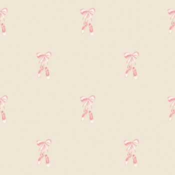 Finom, gyermekszobába való flisz tapéta, rózsaszín balerinák bézs alapon.