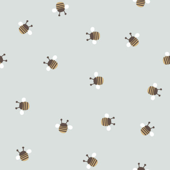 Aranyos gyermekvilla tapéta, méhecskék, kék háttér, barna, arany és fehér méhecskék.