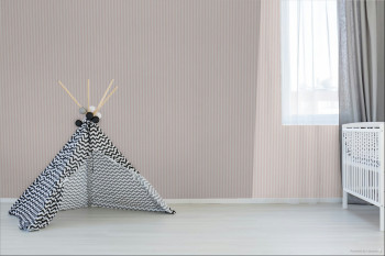 Vlies tapéta, finom textúrával, rózsaszín-fehér, 6 mm széles csíkokkal.