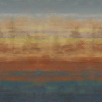 Luxus vlies 3 részes dekoratív panel ködös fák mintájával a horizonton. A tapéta szürke-barna árnyalatú.