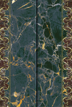 Luxus vlies 2 részes dekoratív panel márványmintával fekete és arany színekben, geometrikus arany mintával a tapéta szélein. Kombinálható a Z64899 mintával.