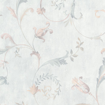 Luxus vlies tapéta virágos ornamentikával, finom stukkó háttéren, világosszürke színben.