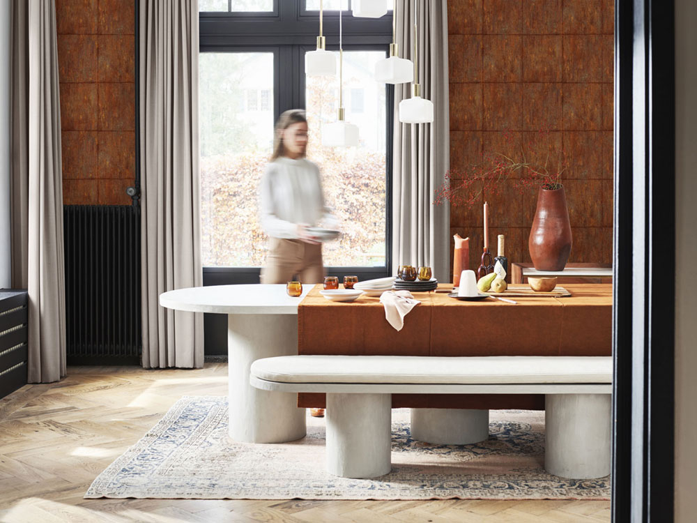 • Textúráink és színeink a természetben találhatóakat utánozzák, kellemes zöldek és földes barnák párosulnak fűfélékkel és oxidált fémekkel. A sötétebb színek bájt és kontrasztot kölcsönöznek a térnek. A 3D-s felületű tapéták mélységet kölcsönöznek. Ezen elemek kiválasztásával könnyen több karaktert vihet otthonába. Akár a könnyed, friss és szellős, akár az otthonos, meleg és meghitt stílust választja, ezek a természet ihlette motívumok a legjobb tereket teremtik meg Önnek a pihenéshez, és a béke és nyugalom érzését idézik elő.