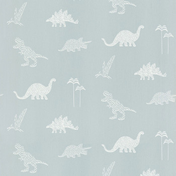 Szürkészöld gyerek gyapjú tapéta dinoszauruszokkal.
