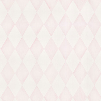 Fehér és rózsaszín gyapjú tapéta, harlekin mintával.