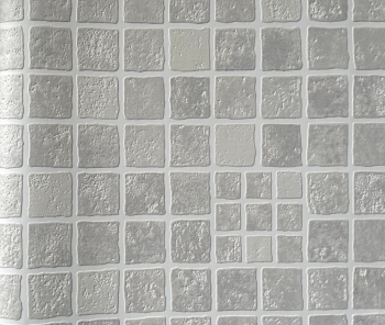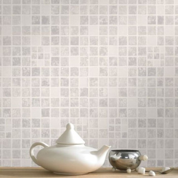 Bézs tapéta szürke árnyalatokkal, mozaik- és csempeimitáció