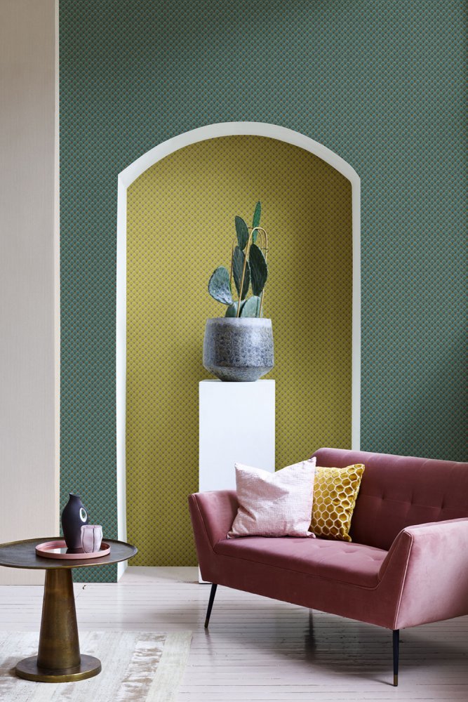 Vlies tapéta vinil felülettel, geometrikus mintával, rózsaszín árnyalatokban.
