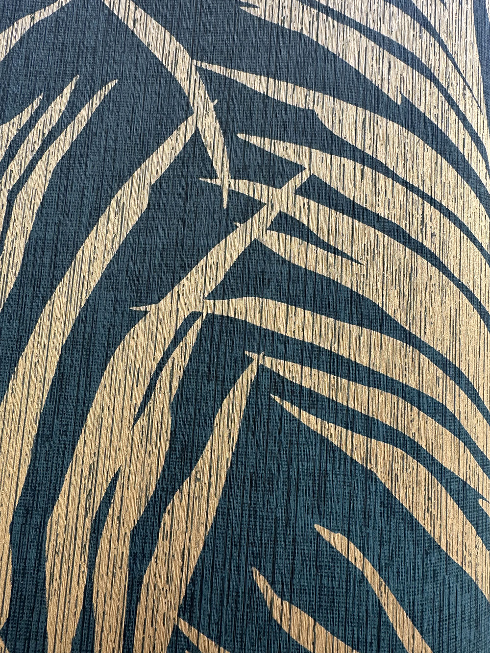 Vlies tapéta, félfényes arany pálmalevelek zöld háttéren.